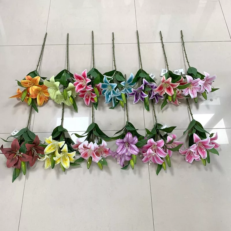 57 सेमी 3 सिर घर और शादी की सजावट के लिए कृत्रिम लिली फूल फूल