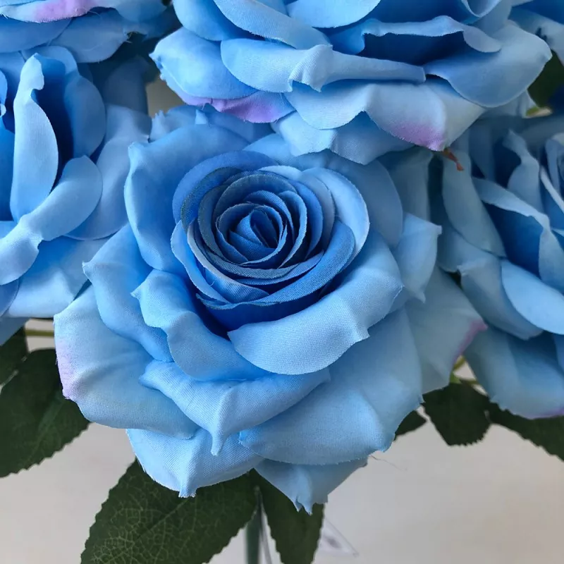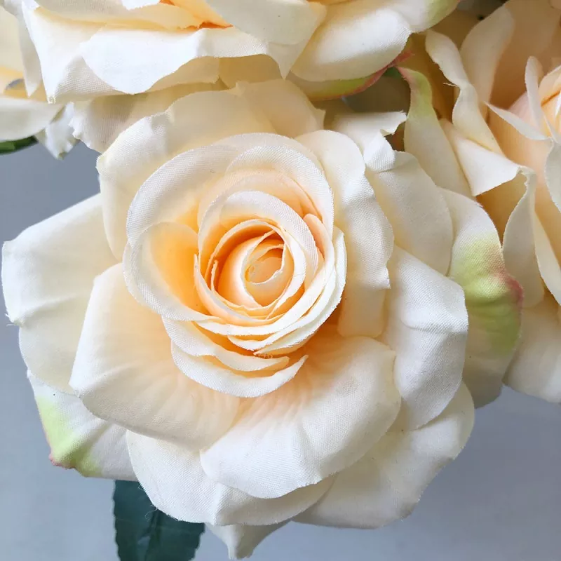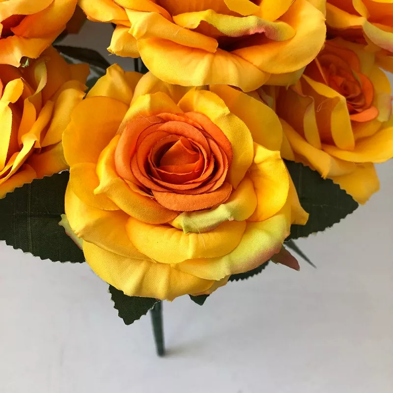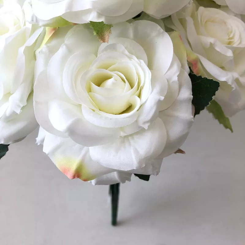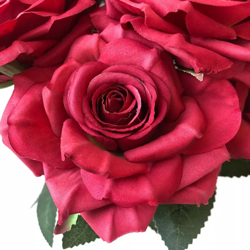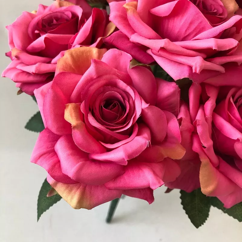 प्रत्येक कृत्रिम गुलाब गुलदस्ते में लगभग 9.5 सेमी के व्यास के साथ 9 बड़े फूलों के सिर होते हैं। फूल भरे और गोल होते हैं, और परतें साफ होती हैं। दृश्य भावना तीन-आयामीता से भरी है। चाहे वह अकेले प्रदर्शित हो या अन्य फूलों के साथ मेल खाता हो, यह एक उच्च-अंत बनावट दिखा सकता है और आसानी से अंतरिक्ष का ध्यान केंद्रित कर सकता है।